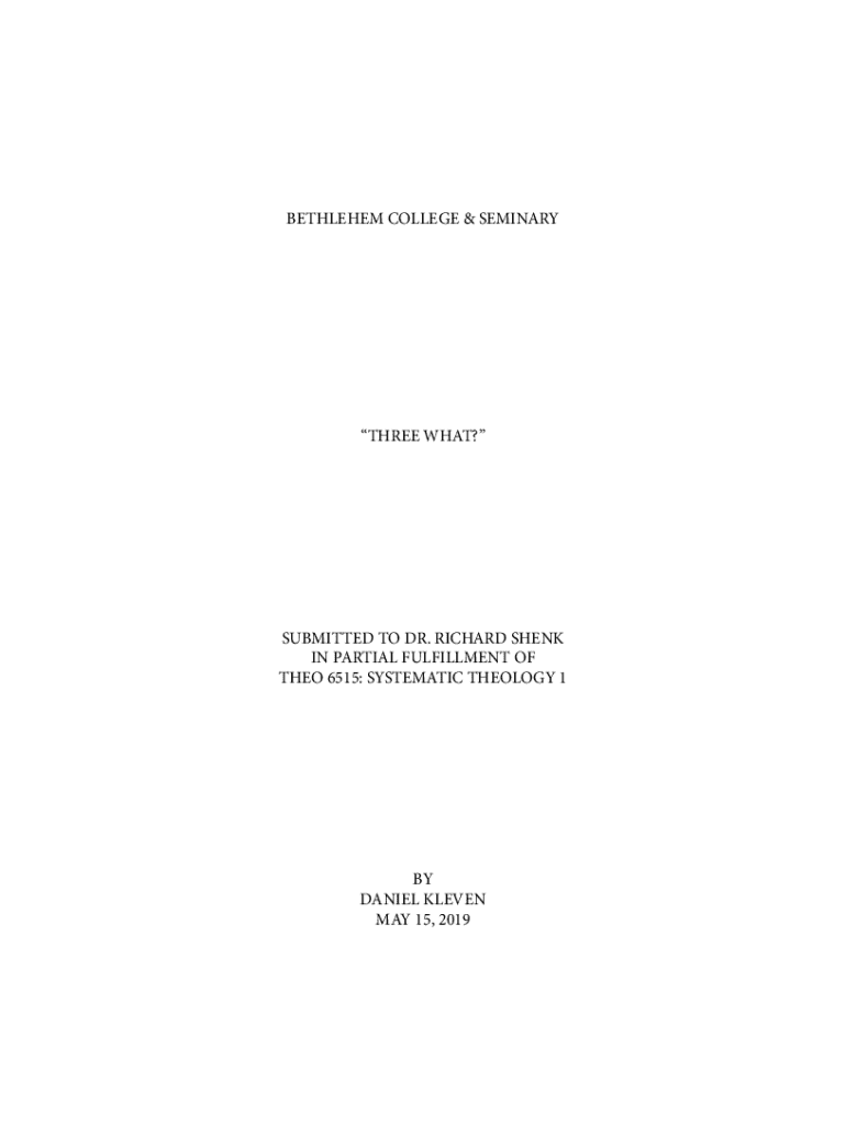 BETHLEHEM COLLEGE & SEMINARYTHREE WHAT?SUBMITTED TO DR. RICHARD SHANK