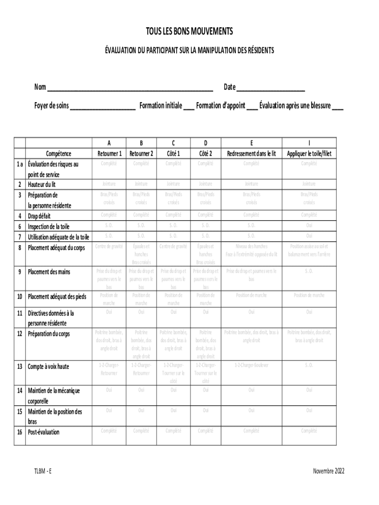 THUS LES BOYS MOVEMENTS VALUATION DU PARTICIPANT SUR LA MANIPULATION DES RSIDENTSNom ___Date ___Foyer de sons ___ Formation initial ___ Formation appoint ___ valuation APRS one pressure ___4 6 7 8Comptence