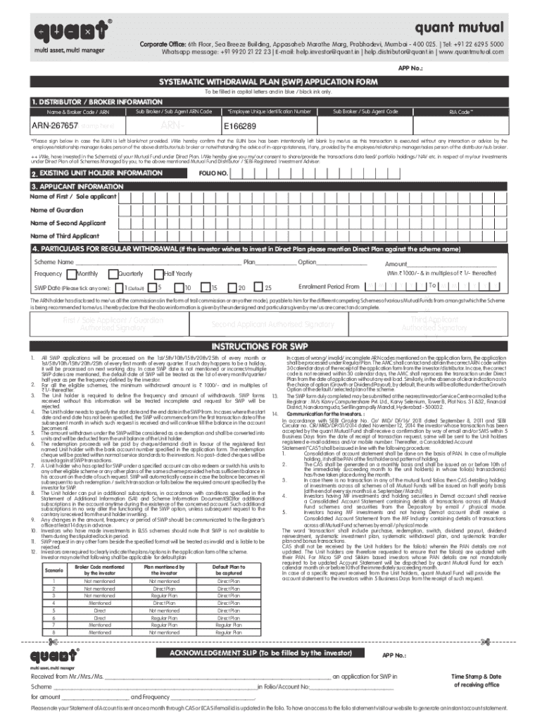 Quaint mutual Corporate Office: 6th Floor, Sea Breeze Building, Appasaheb Marathi Mary, Prabhavati, Mumbai 400 025. | Tel: +91 22 6295 5000 WhatsApp message: +91 9920 21 22 23 | Email: help.investor@quant.in