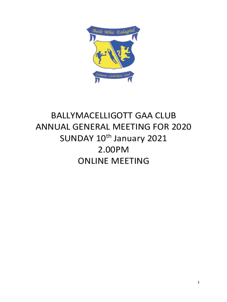 Get the free BALLYMACELLIGOTT GAA CLUB ANNUAL GENERAL ...
