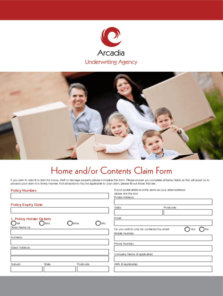 Get the free Arcadia Home and/or Contents Claim Form Home and/or Contents Claim Form