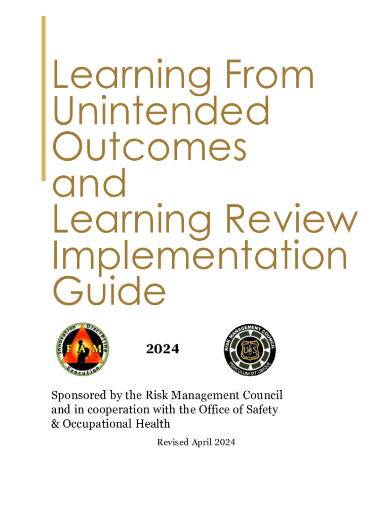 Learning From Unintended Outcomes and Learning Review Implementation Guide 2024Sponsored by the Risk Management Council and in cooperation with the Office of Safety & Occupational Health Revised April