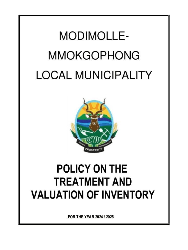 MODIMOLLEMMOKGOPHONG LOCAL MUNICIPALITYPOLICY ON THE TREATMENT AND VALUATION OF INVENTORY FOR THE YEAR 2024 / 2025MODIMOLLEMOOKGOPHONG LOCAL MUNICIPALITY1POLICY ON THE TREATMENT AND VALUATION OF INVENTORY1.Definitions