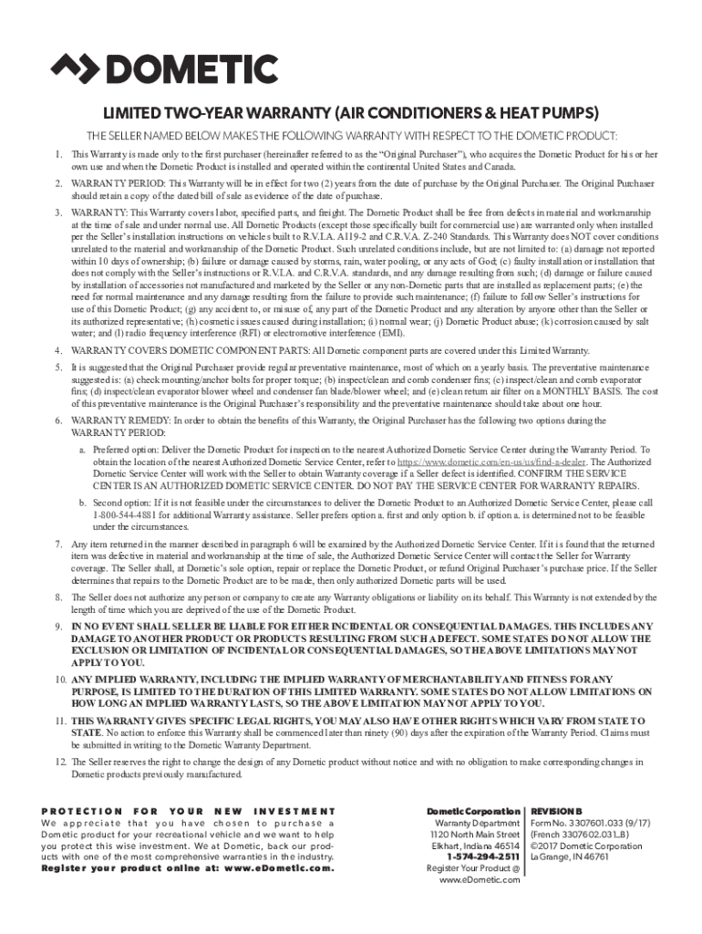 Dometic Air Conditioner Warranty is not the form you're looking for?Search for another form here.