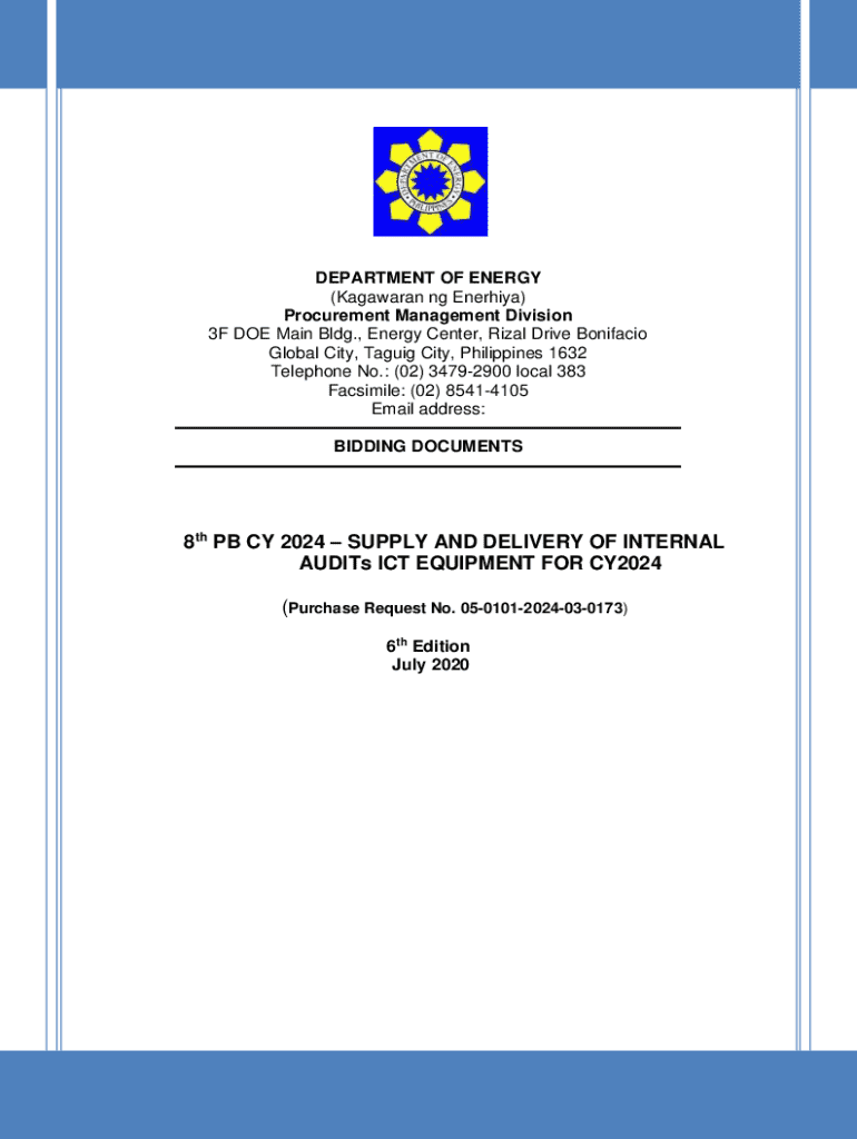 DEPARTMENT OF ENERGY (Kagawaran ng Enerhiya) Procurement Management Division 3F DOE Main Bldg., Energy Center, Rizal Drive Bonifacio Global City, Taguig City, Philippines 1632 Telephone No.: (02)