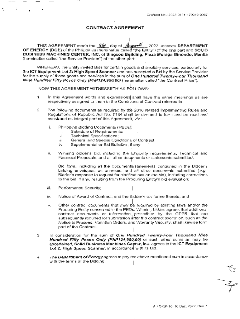 Ccnract No.: 202301511792420057CONTRACT AGREEMENT?.4tTHIS AGREEMENT made the day of 2023 between DEPARTMENT OF ENERGY (DOE) of the Philippines (hereinafter caUe \"the Entity\") o the one part and