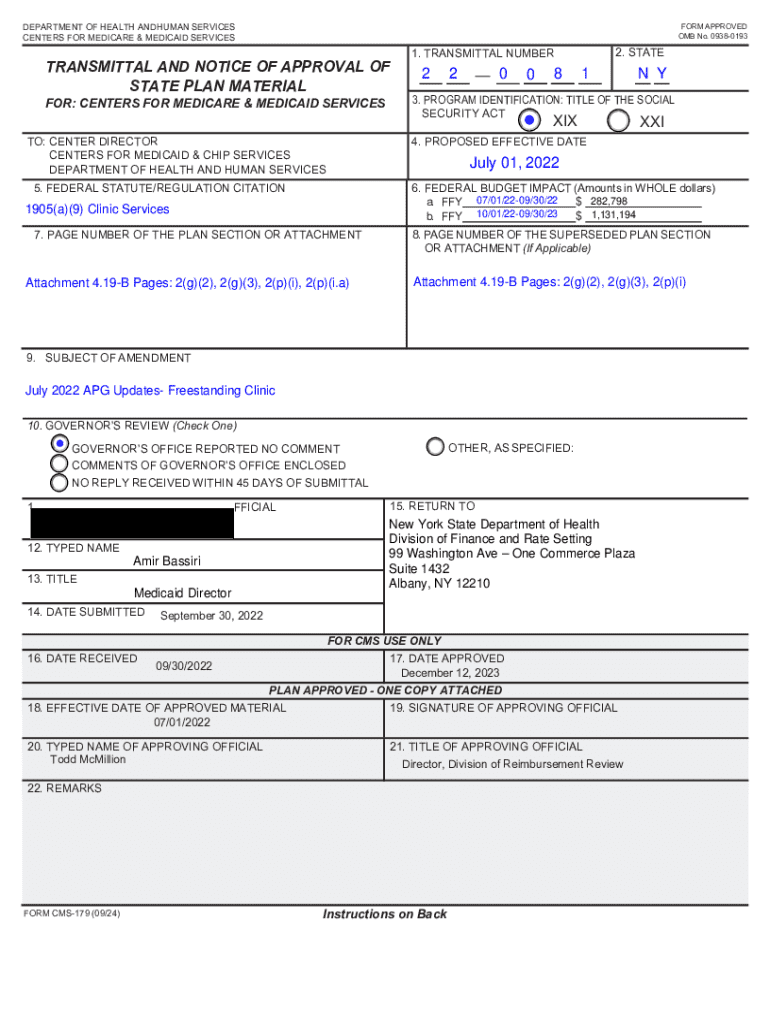 Get the free NY State Plan Amendment (SPA): NY-22-0081
