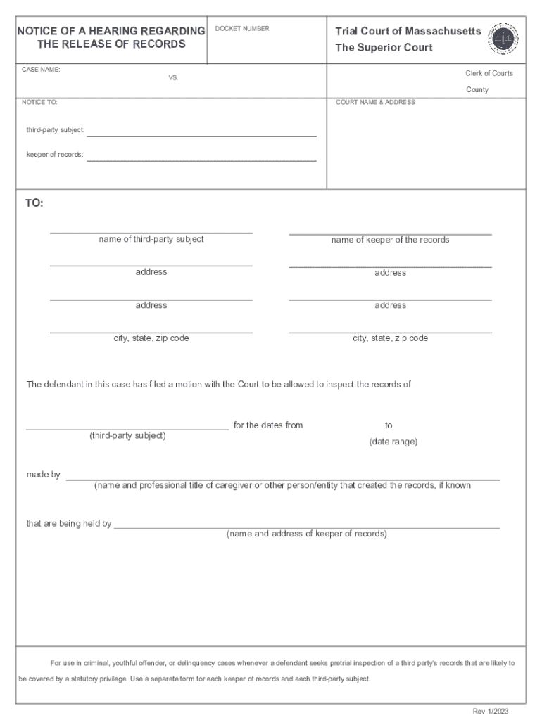 Get the free notice of a hearing regarding the release of records