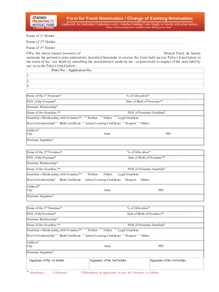 Form for Fresh Nomination / Change of Existing Nomination