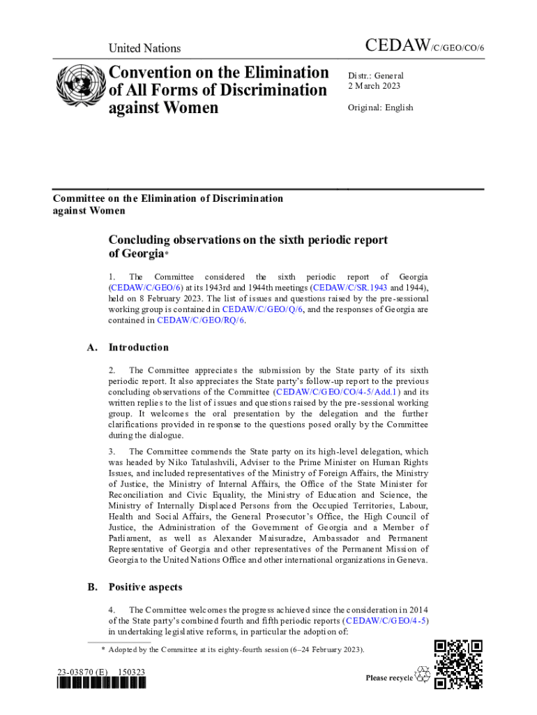 CEDAR/C/GEO/CO/6United NationsConvention on the Elimination