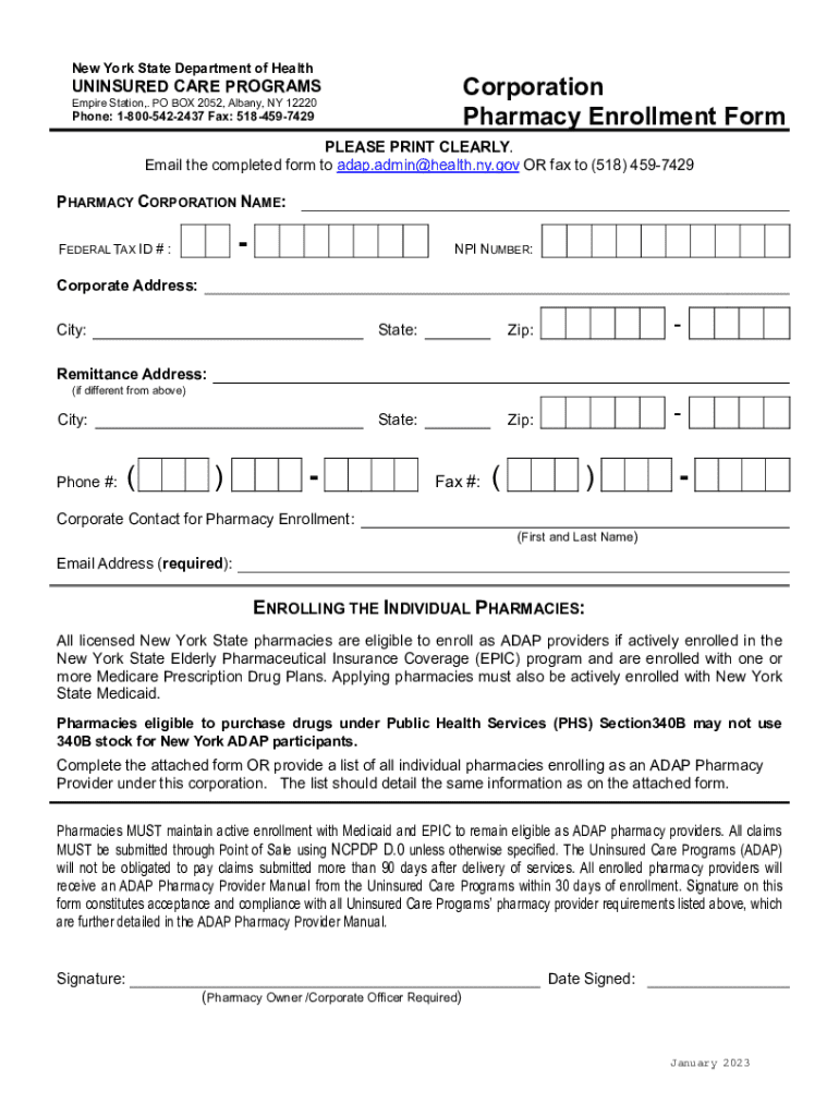 Pharmacy Enrollment FormUNINSURED CARE PROGRAMS