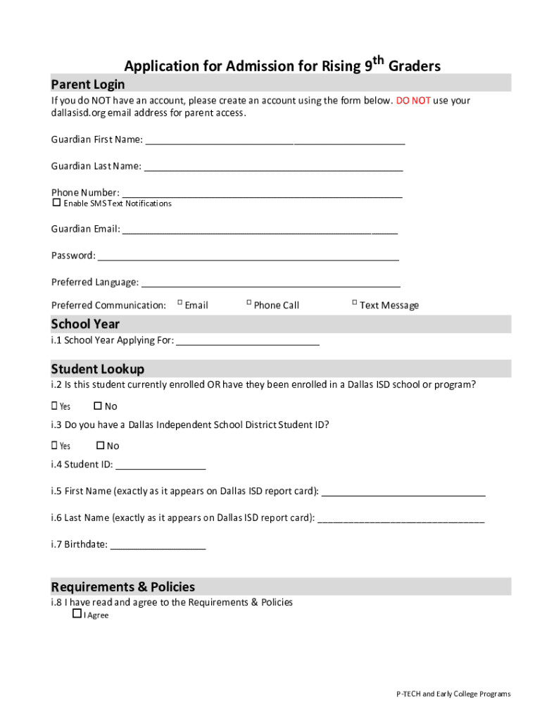 Get the free Application for Admission for Rising 9 Graders - Dallas ISD