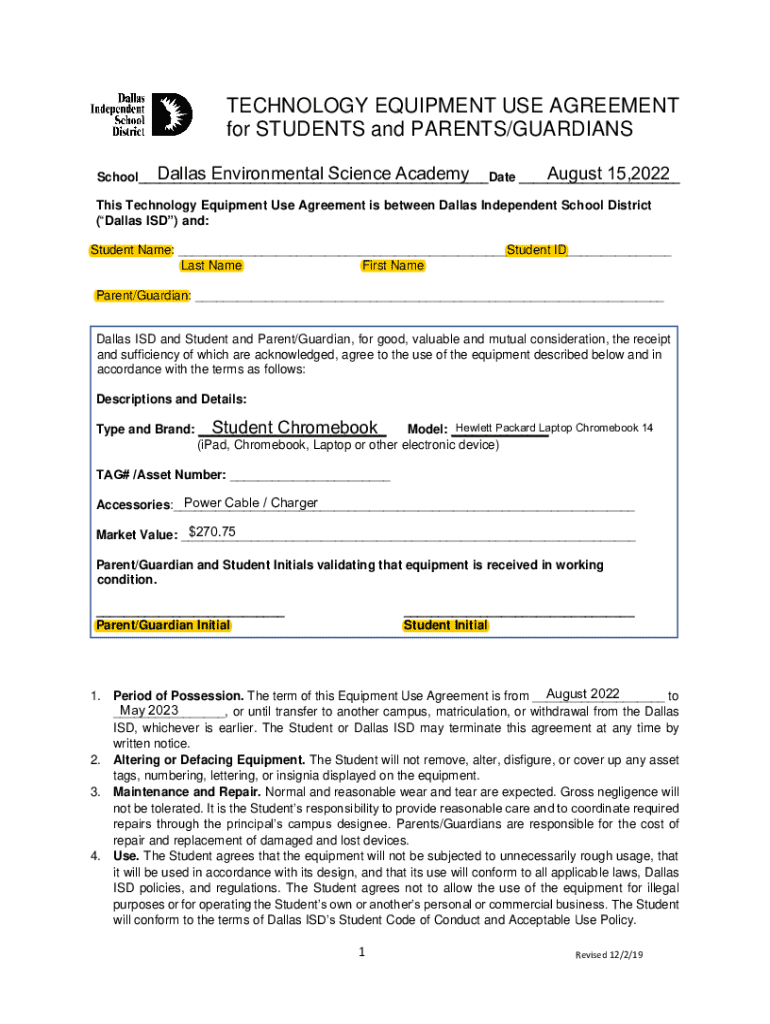 Get the free Technology Equipment Use Agreement-Students & ...