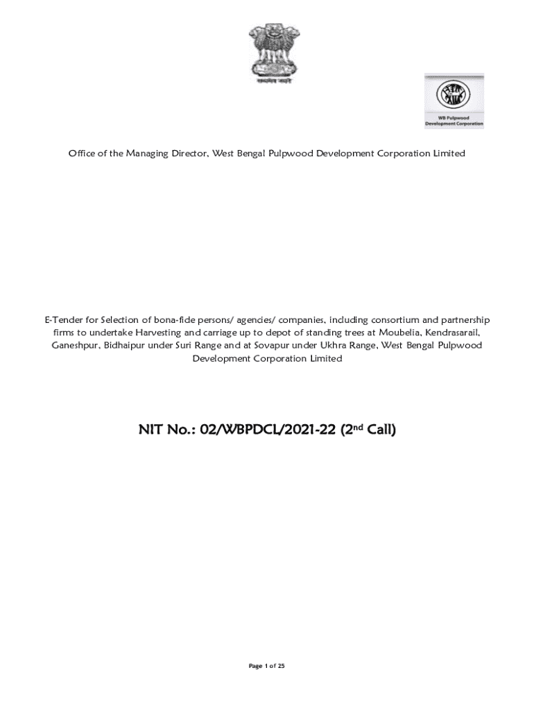 Office of the Managing Director, West Bengal Pulpwood Development Corporation LimitedETender for Selection of bonafide persons/ agencies/ companies, including consortium and partnership firms to undertake