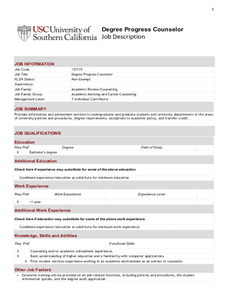 Job Code:137119Job Title:Degree Progress Counselors Status:NonExemptSupervisory: