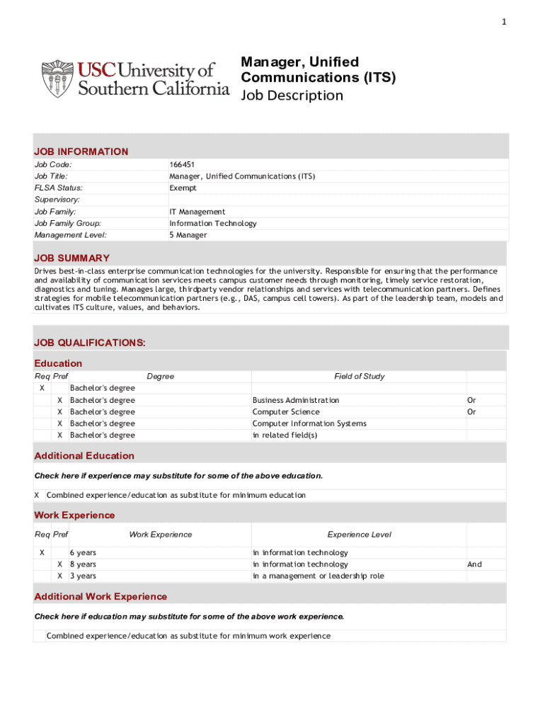 Job Code:166451Job Title:Manager, Unified Communications (ITS)FLEA Status:ExemptSupervisory: