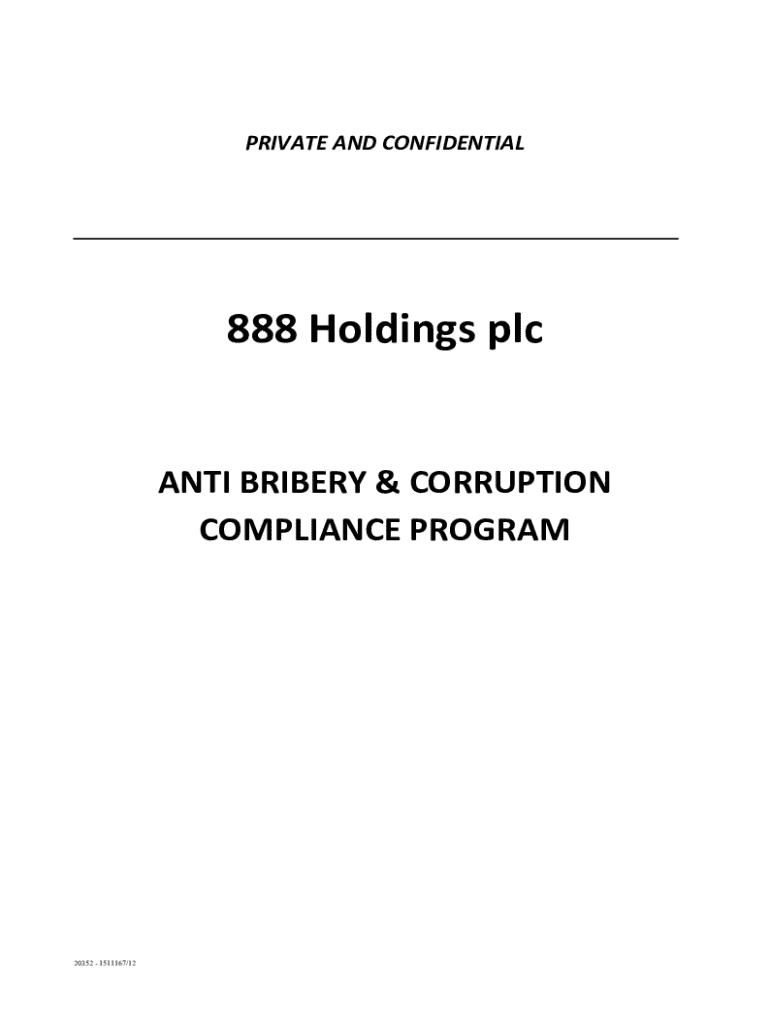 PRIVATE AND CONFIDENTIAL888 Holdings plc ANTI BRIBERY & CORRUPTION COMPLIANCE PROGRAM20352 1511167/122TABLE OF CONTENTS A.B.C.BACKGROUND 1.The Company\'s new AntiBribery and Corruption Compliance