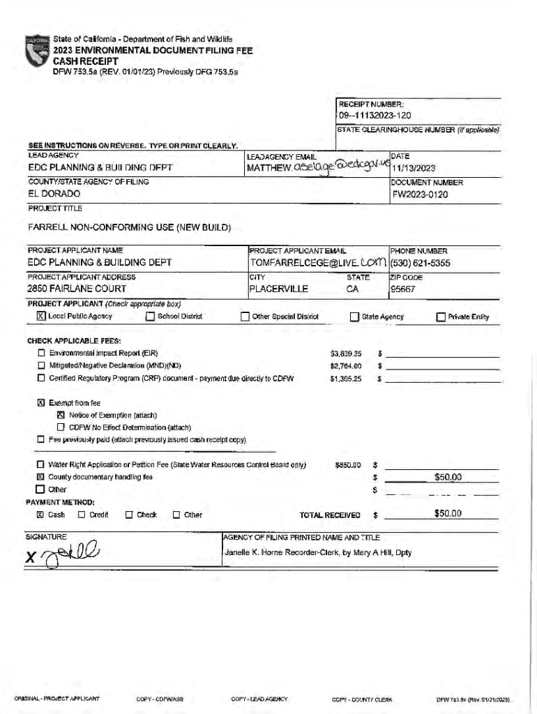 DFW 753.5a (REV. 01/01/23) Previously DFG 753. SaRECEIPT NUMBER:0911132023120