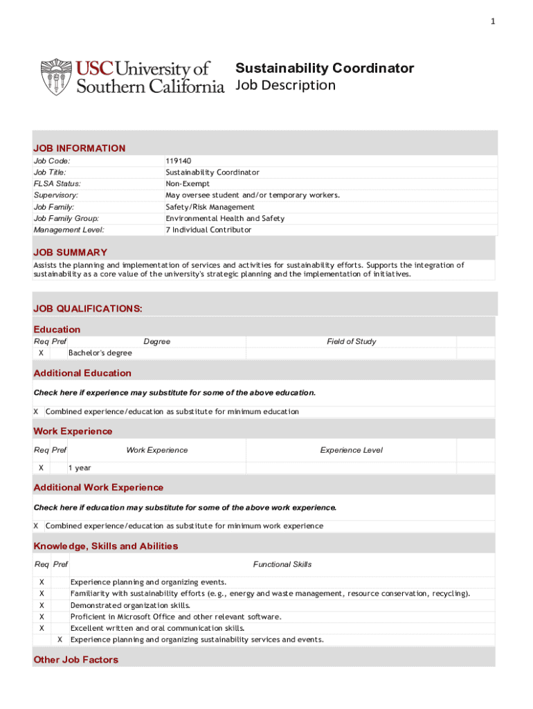 1Sustainability Coordinator Job Description INFORMATION