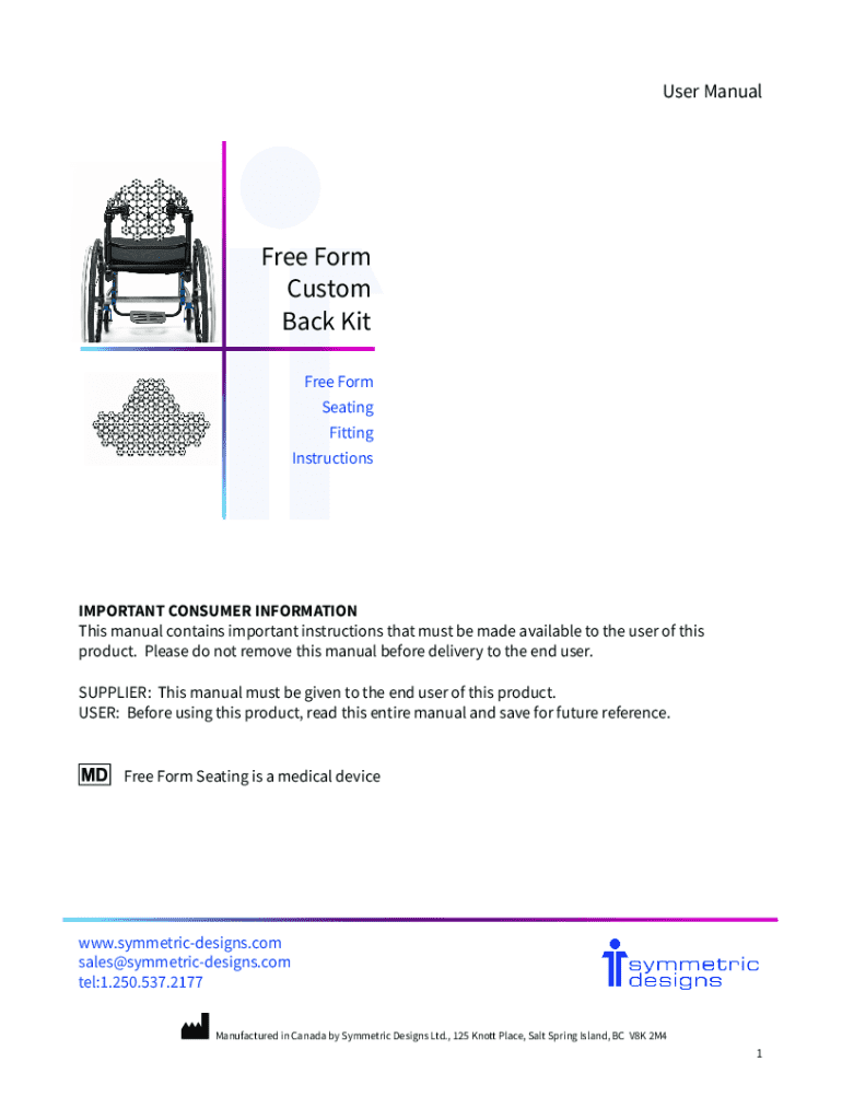 User ManualFree Form Custom Back Kit Free Form Seating Fitting InstructionsIMPORTANT CONSUMER INFORMATION This manual contains important instructions that must be made available to the user of this