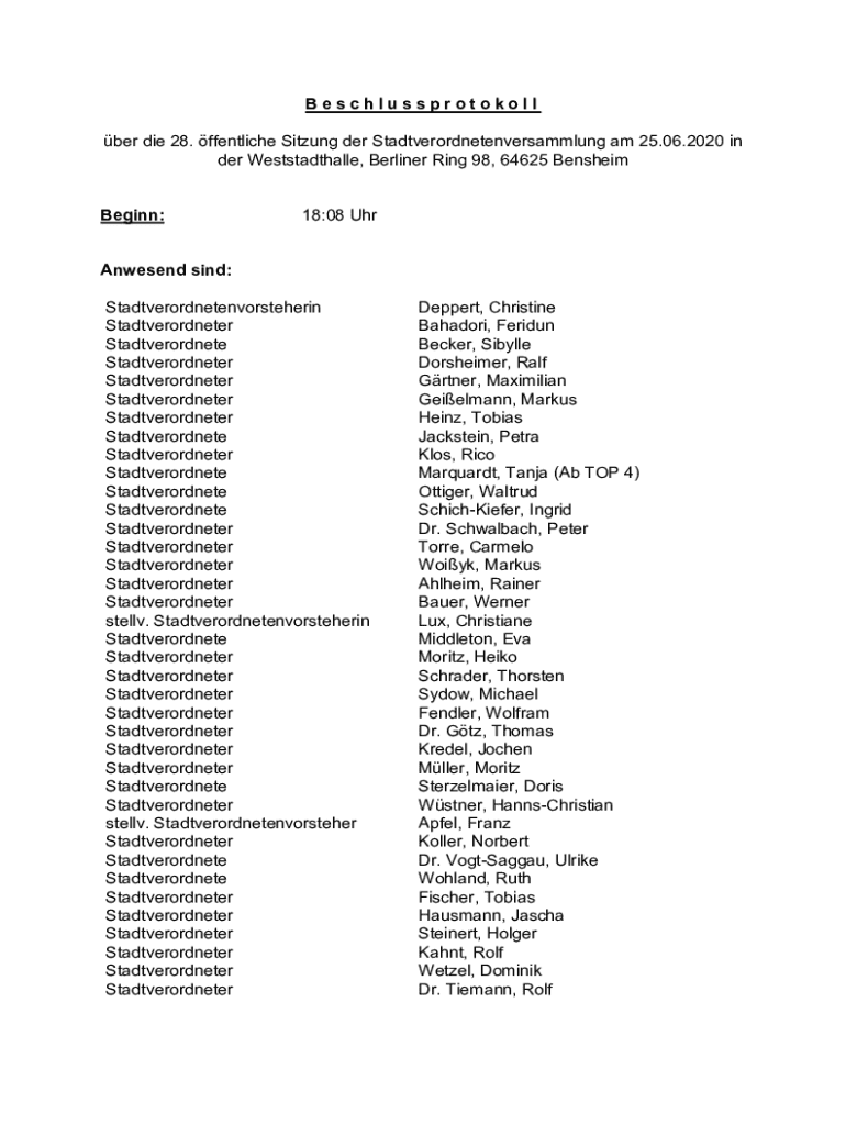 her Weststadthalle, Berliner Ring 98, 64625 BensheimBeginn:18:08 UhrAnwesend find: