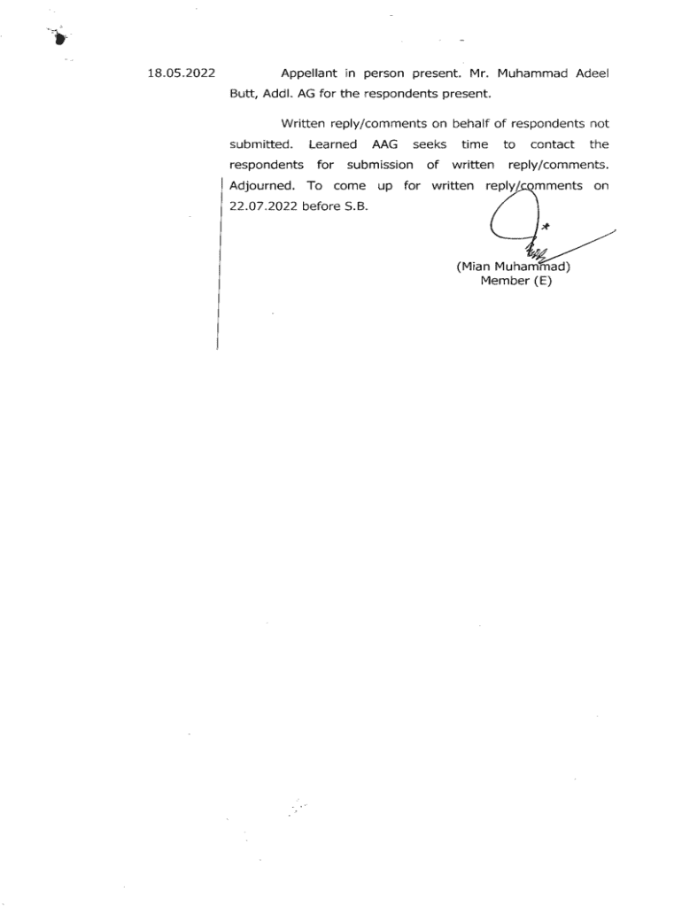 18.05.2022Appellant in person present. Mr. Muhammad Adeel
