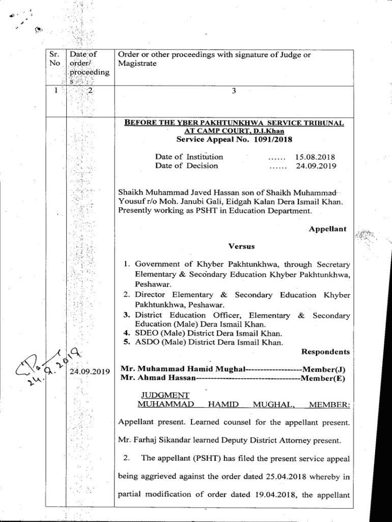 E# ;. VSR. Date:of Order or other proceedings with signature of Judge or No, order/, Magistrate proceeding \':r1 :31 1BEFORE THE BER PAKHTUNKHWA SERVICE TRIBUNAL AT CAMP COURT. DJ. Khan Service Appeal