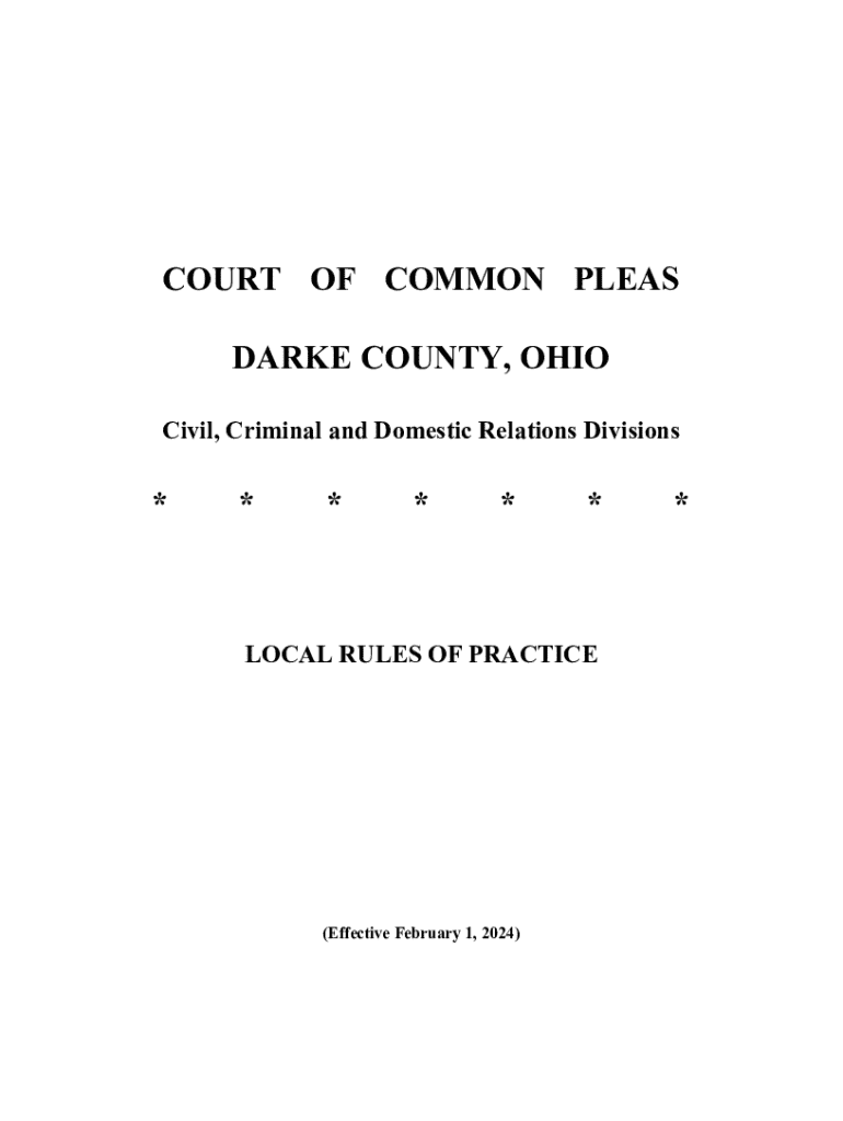 COURT OF COMMON PLEAS DARK COUNTY, OHIO Civil, Criminal and Domestic Relations Divisions******LOCAL RULES OF PRACTICE(Effective February 1, 2024)*THE COMMON PLEAS COURT OF DARK COUNTY, OHIO Civil,
