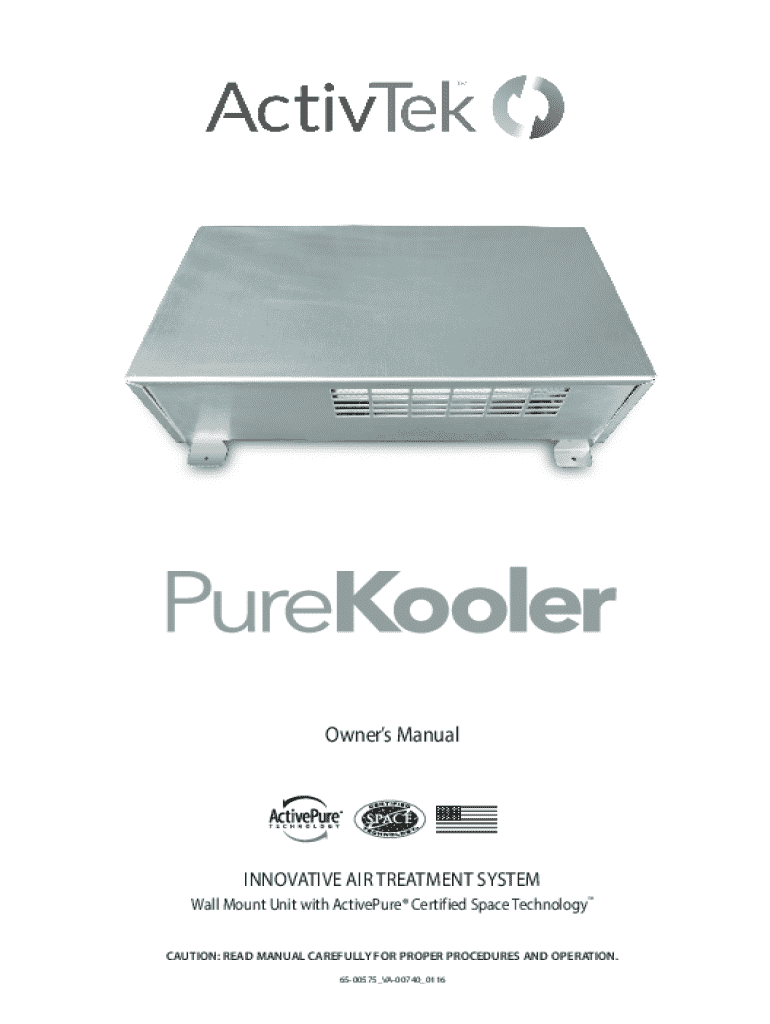 Owners ManualINNOVATIVE AIR TREATMENT SYSTEM Wall Mount Unit with ActivePure Certified Space Technology CAUTION: READ MANUAL CAREFULLY FOR PROPER PROCEDURES AND OPERATION. 6500575_VA00740_0116IMPORTANT