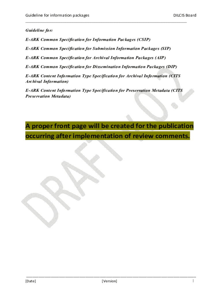 Guideline for information packages DILCIS Board ___ Guideline for: EARK Common Specification for Information Packages (CSIP) EARK Common Specification for Submission Information Packages (SIP) EARK