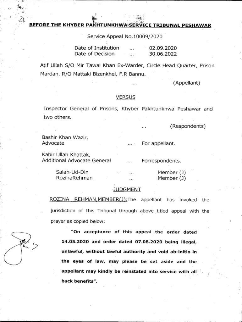 I\':!4. before THE KHYBER PAKHTUNKHWA^SEF^CE TRIBUNAL PESHAWARService Appeal No. 10009/2020