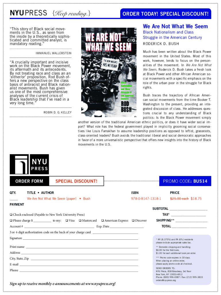 NYU PRESS Keep reading. ORDER TODAY! SPECIAL DISCOUNT! We Are Not What We Seethes story of Black social movements in the U.S., as seen from the inside by a theoretically sophisticated and committed