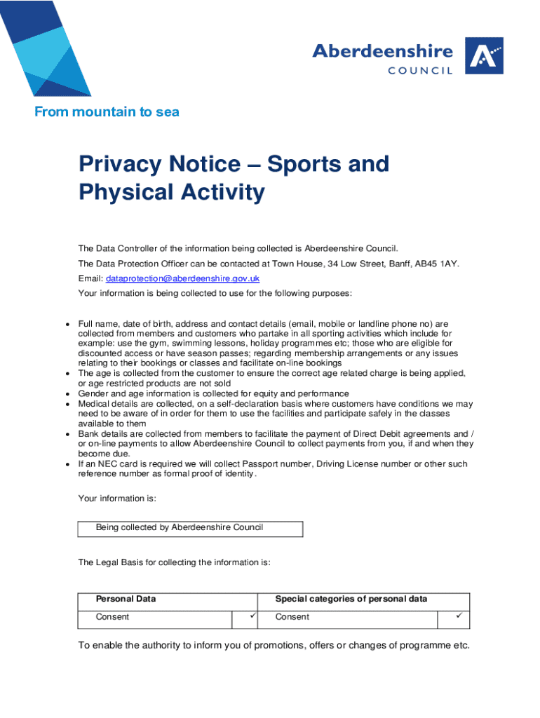 Get the free Privacy Notice - Sports & Physical Activity