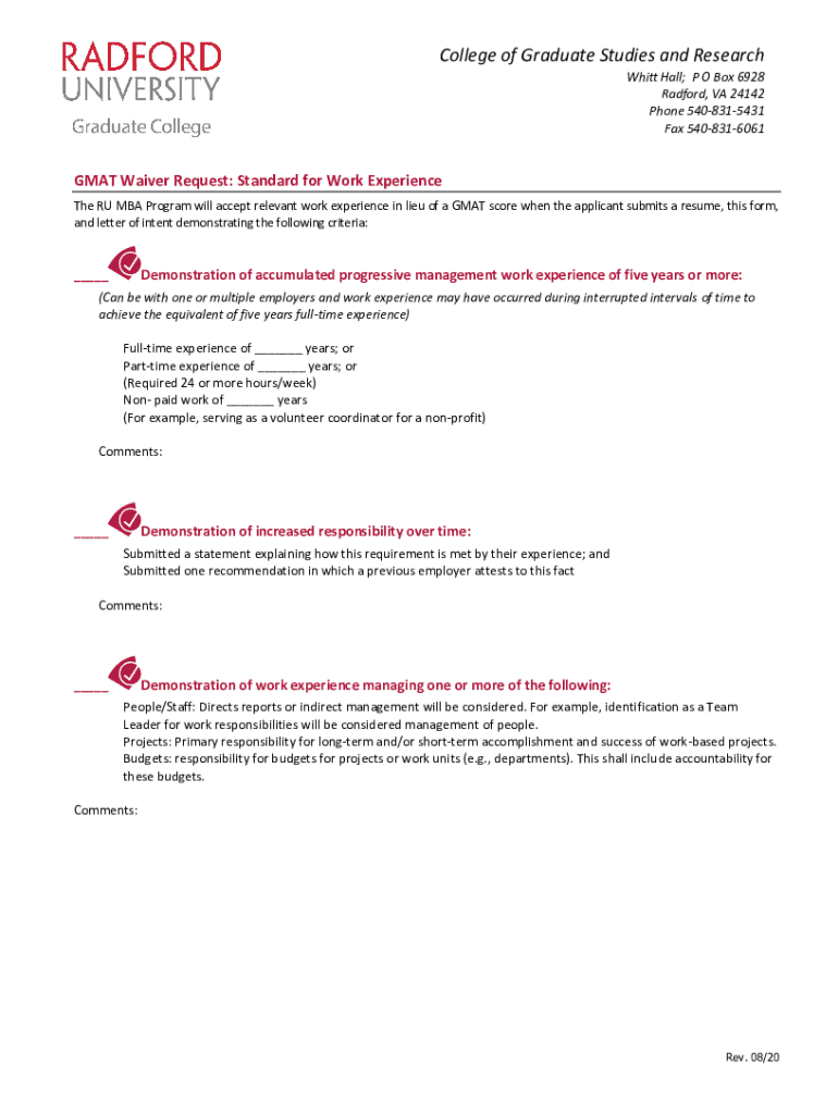 Fax 5408316061GMAT Waiver Request: Standard for Work Experience
