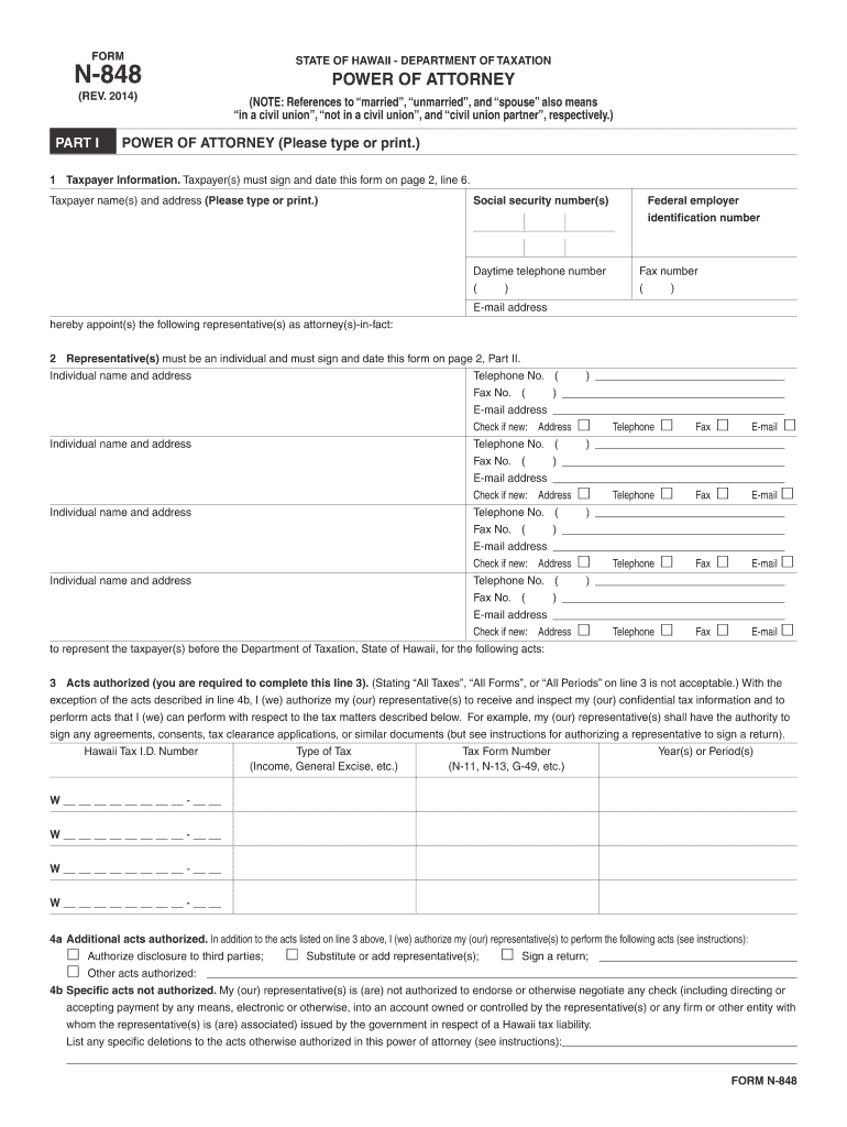 Clear Form N-848 STATE OF HAWAII DEPARTMENT OF TAXATION (REV. 2014) (NOTE: References to married, unmarried, and spouse also means in a civil union, not in a civil union, and civil union partner,
