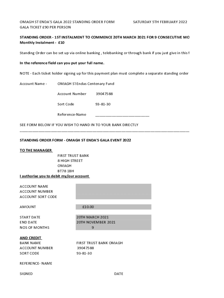 Get the free Omagh St. Enda's Gala 2022 Standing Order Form