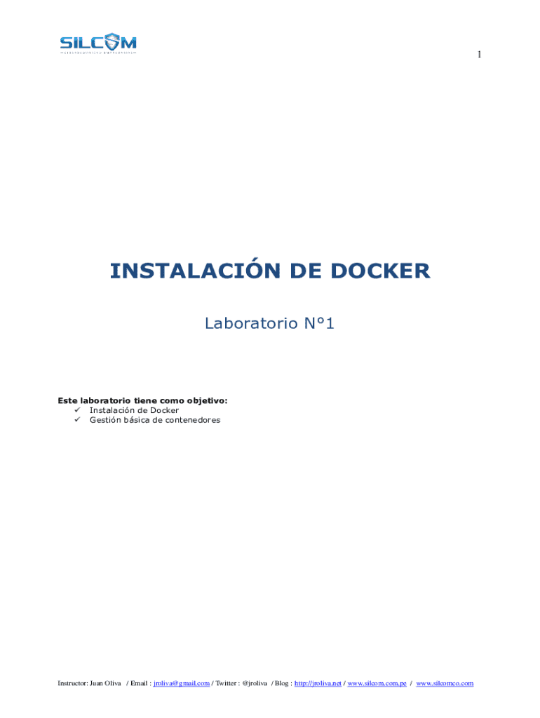 1INSTALACIN DE DOCKER Laboratorio N1Este laboratorio tiene como objetivo: Instalacin de Docker Gestin bsica de contenedoresInstructor: Juan Oliva / Email : jroliva@gmail.com / Twitter : @jroliva /