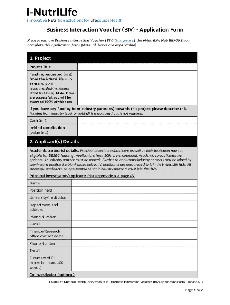 Instructions for the Business Interaction Voucher (BIV) - Application form
