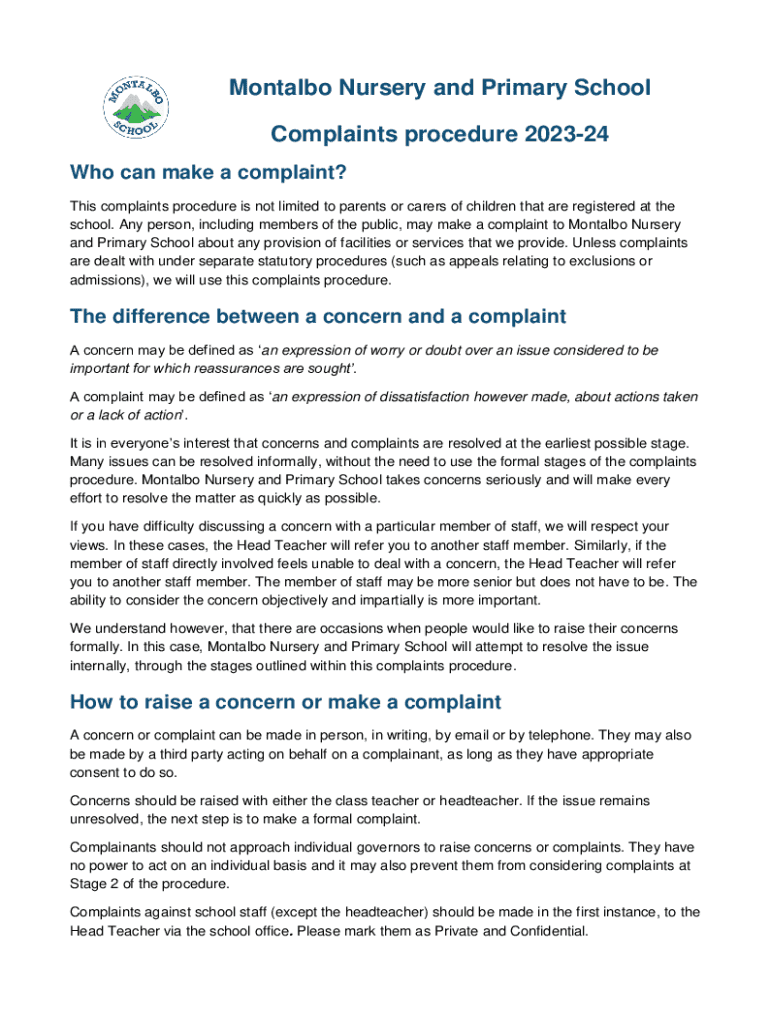 Get the free the thinking schools federation complaint policy & procedure - montalbo durham sch