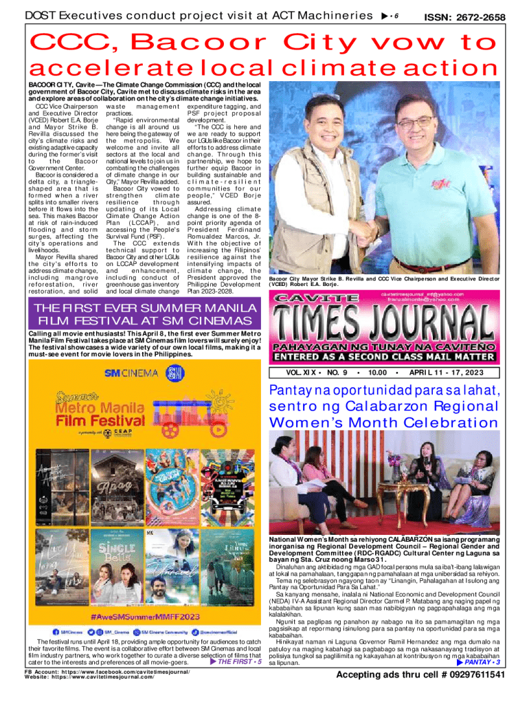 DOST Executives conduct project visit at ACT Machineries6ISSN: 26722658CCC, Bacoor City vow to accelerate local climate action BACOOR CITY, Cavite The Climate Change Commission (CCC) and the local