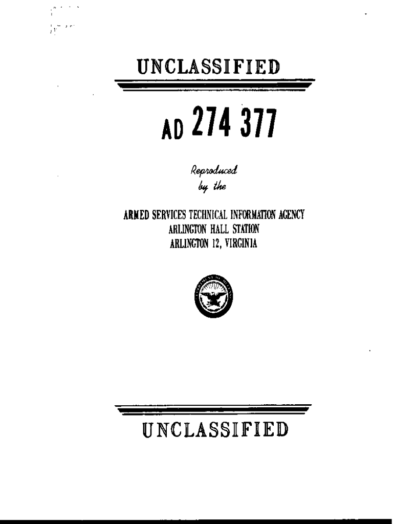 UNCLASSIFIEDAD2 74377ARMED SERVICES TECHNICAL INFORMATION AGENCY ARLINGTON HALL STATION ARLINGTON 12, VIRGINIAwUNCLASSIFIEDNOTICE: When government or other drawings, specifications or other data are