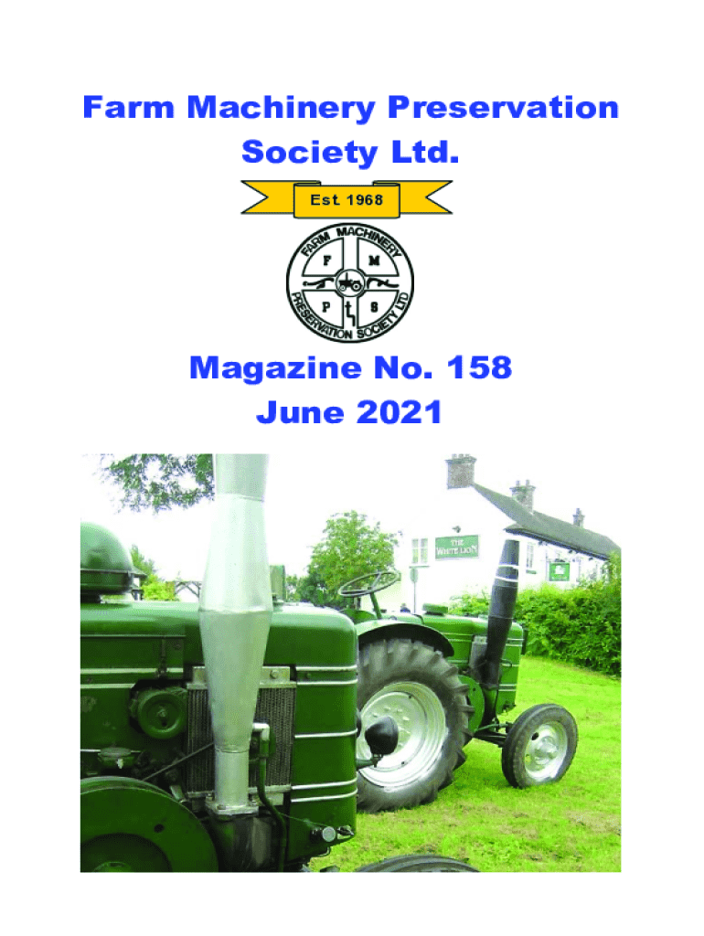 Farm Machinery Preservation Society Ltd. Est. 1968Magazine No. 158 June 2021F. M.P.S Committee, Officers, and Editor Bryan Mills (Chairman) 4 Sycamore Close Haverhill CB9 9DT 07967 366344 bryanmills571@gmail.com