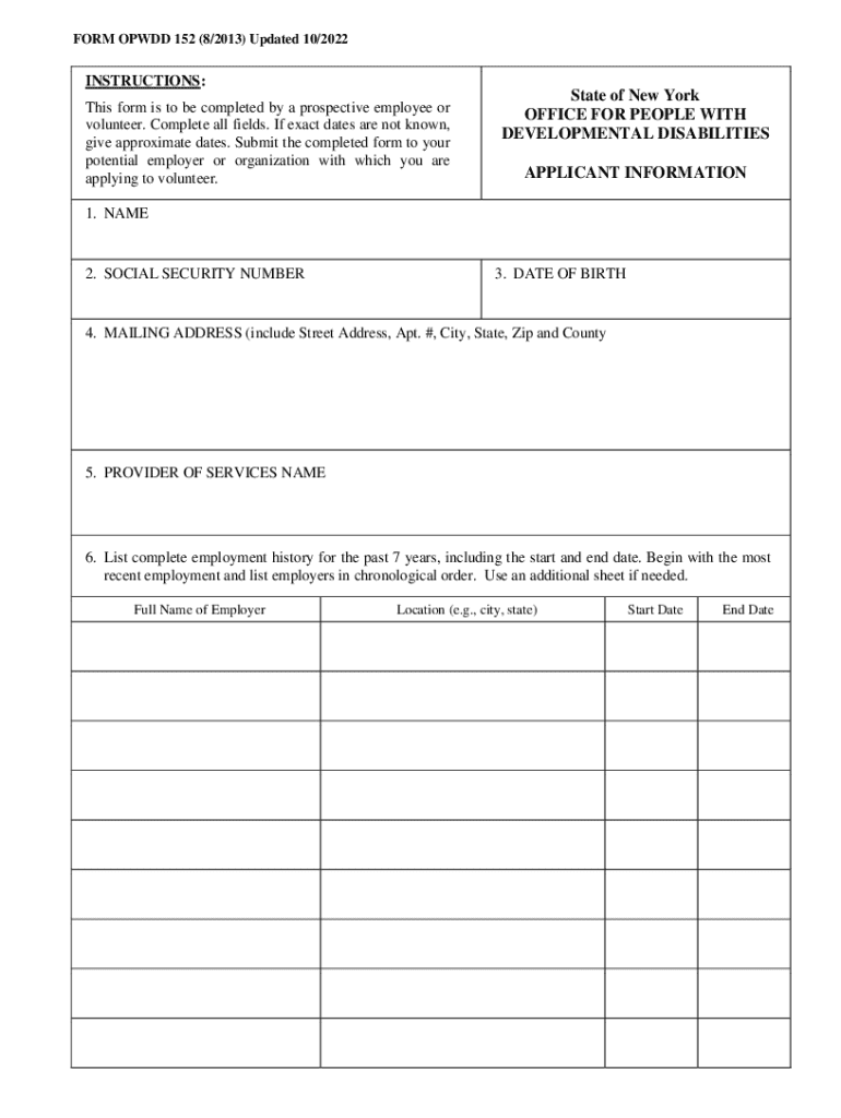 FORM ODD 152 (8/2013) Updated 10/2022INSTRUCTIONS: This form is to be completed by a prospective employee or volunteer. Complete all fields. If exact dates are not known, give approximate dates. Submit