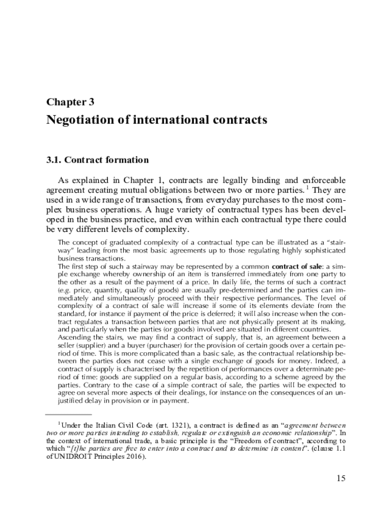Chapter 3Negotiation of international contracts 3.1. Contract formation As explained in Chapter 1, contracts are legally binding and enforceable agreement creating mutual obligations between two or