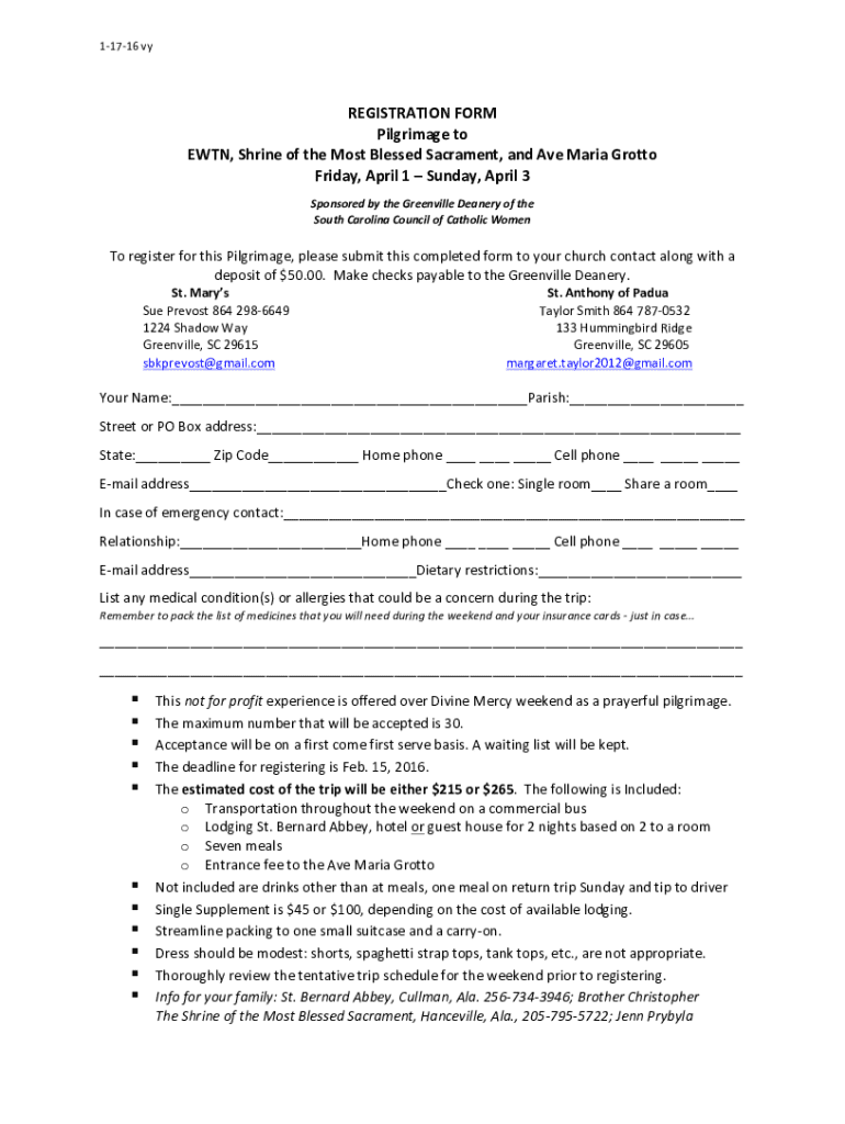 Get the free Pilgrimages to the Shrine of the Blessed Sacrament ...