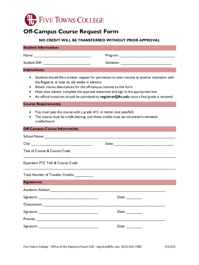 Students who wish to take a course off-campus are required to file the off-campus course request form.