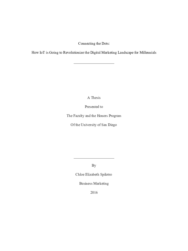 Connecting the Dots: How IoT is Going to Revolutionize the Digital Marketing Landscape for Millennials ___A Thesis Presented to The Faculty and the Honors Program Of the University of San Diego___