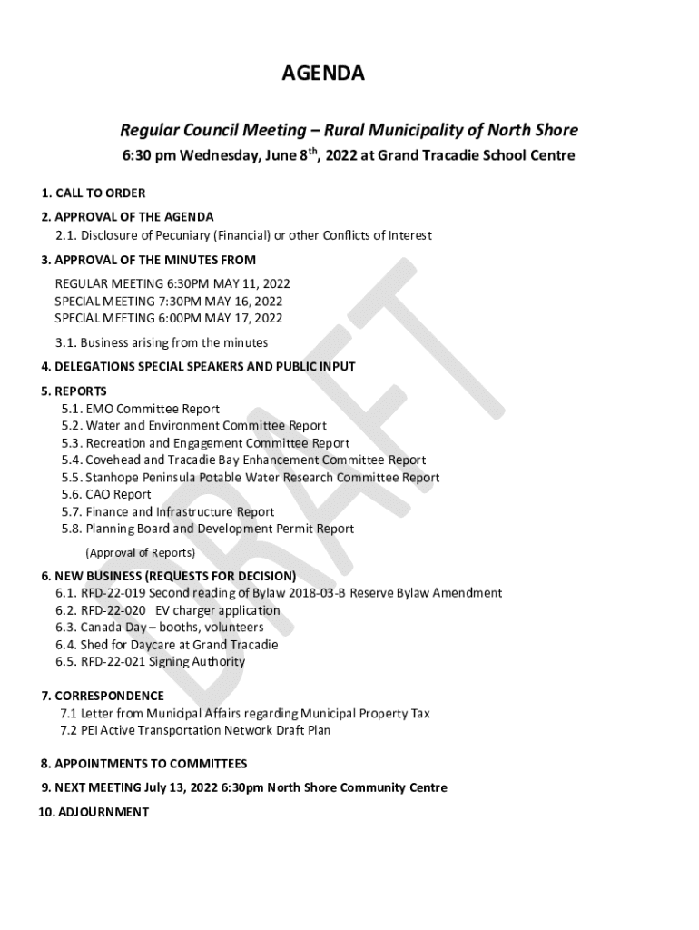 Regular Council Meeting Rural Municipality of North Shore