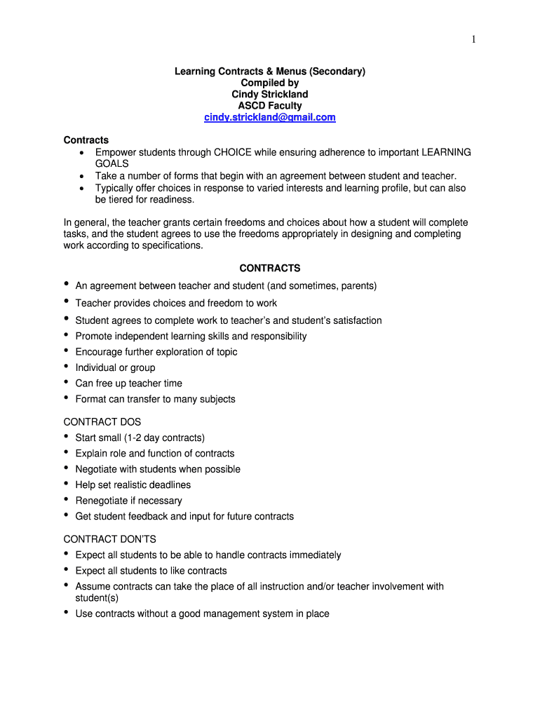 Get the free Learning Contracts amp Menus Secondary Compiled by