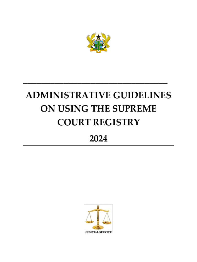 ___ ADMINISTRATIVE GUIDELINES ON USING THE SUPREME COURT REGISTRY 20241 COMPENDIUM OF PRACTICE DIRECTIONS & ADMINISTRATIVE GUIDELINES IN GHANA 2024ACKNOWLEDGEMENT This Document forms part of a Compendium